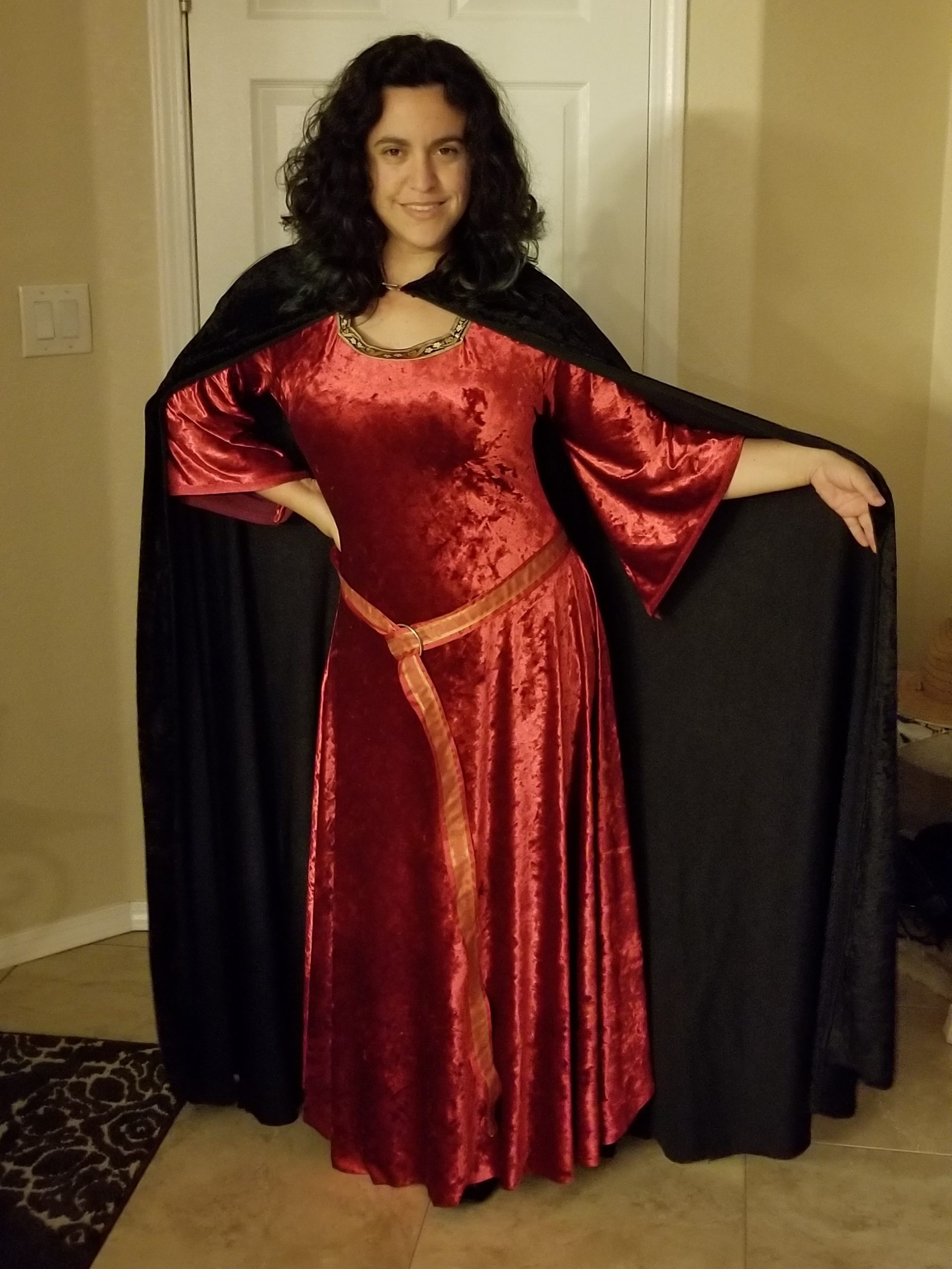 Created in 2018 for Anime Expo in Los Angeles. The dress and cloak are made from crushed velvet. The collar is trimmed, and the belt is two ribbons that have…