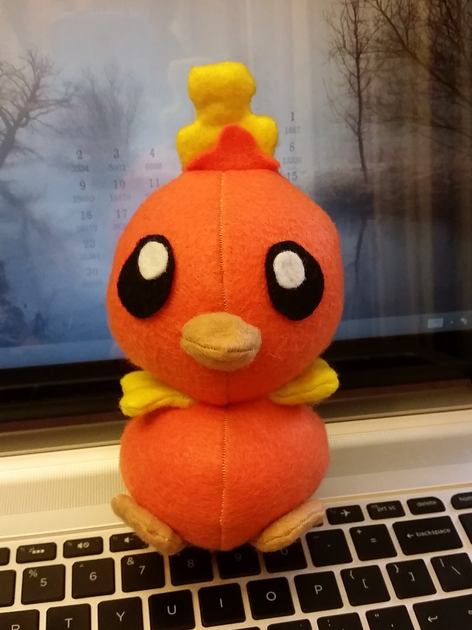 Commissioned in June 2016, this plush is a recreation of Torchic from the third generation of Pokémon. The plush is made entirely of felt and sewn by hand.