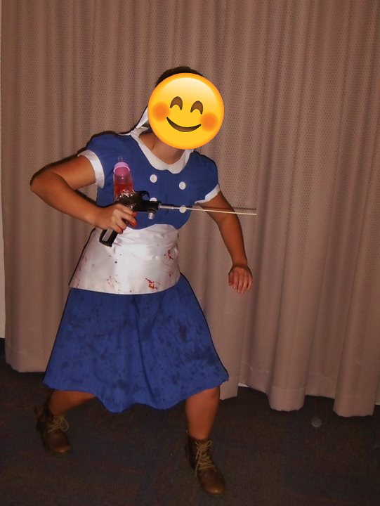 Created in 2013 for Halloween. This is a recreation of the Little Sister dress from the video game BioShock. Dress is made from three yards of grey, pinstriped fabric that…