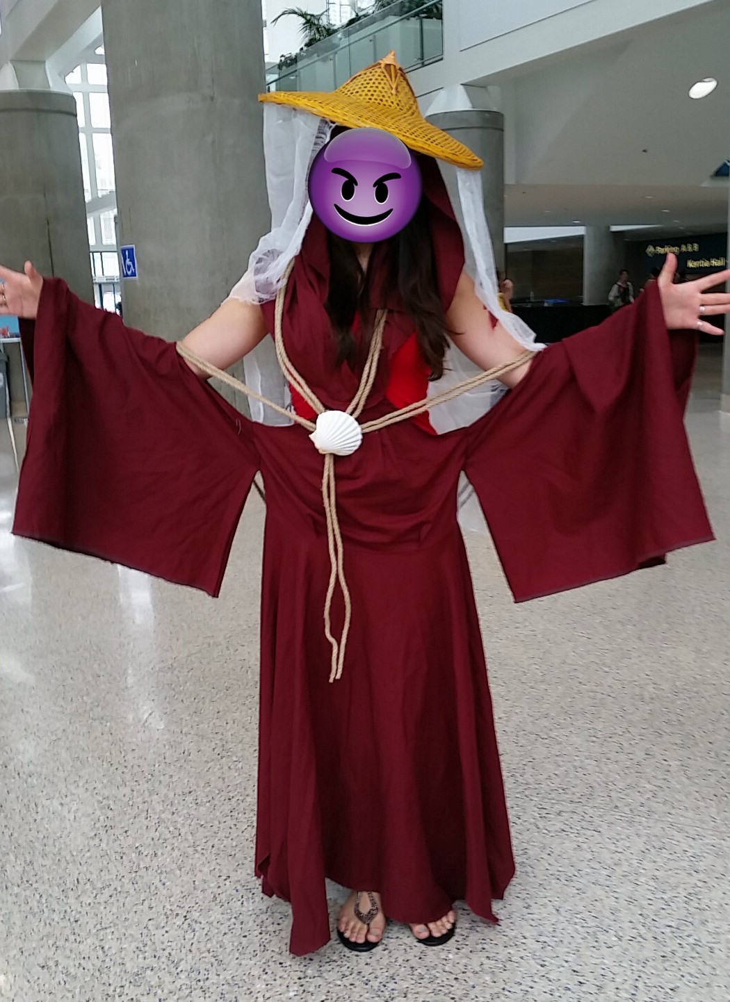 Commission from 2017 for Los Angeles Comic Con, or Comikaze, after Katara’s alter-ego The Painted Lady from Avatar: The Last Airbender. The dress is made from a deep burgundy broadcloth,…